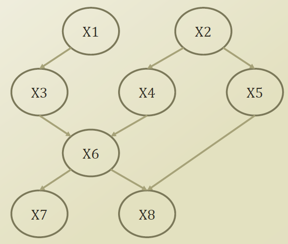위의식은 X1 ~X8 의 많은 Parameter를 Bayesian network의 관계를 이용하여 Parameter의 수를 줄였다.