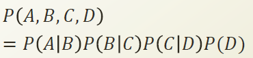 P(A,B) X P(B,C) X P(C,D) / P(B) X P(C) = P (A|B) X P(B|C)XP(C|D)XP(D) 가 된다.