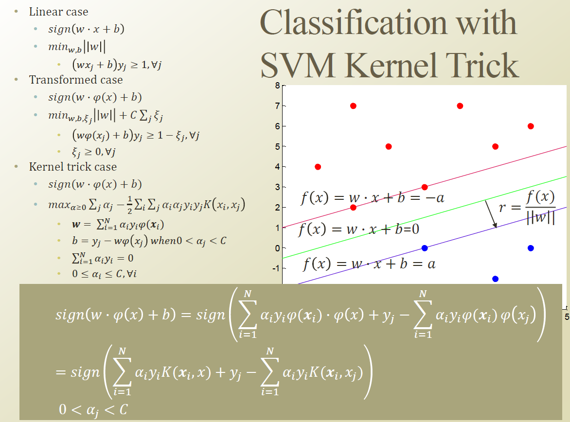 Non-linear하게 만들기위해서 linear model을 높은차원에 있는 데이터에 적용하는 형태로 만든것이다. 근데 Kernel trick을 이용하면 높은차원으로의 데이터 transform을 쉽게할수 있었다.
