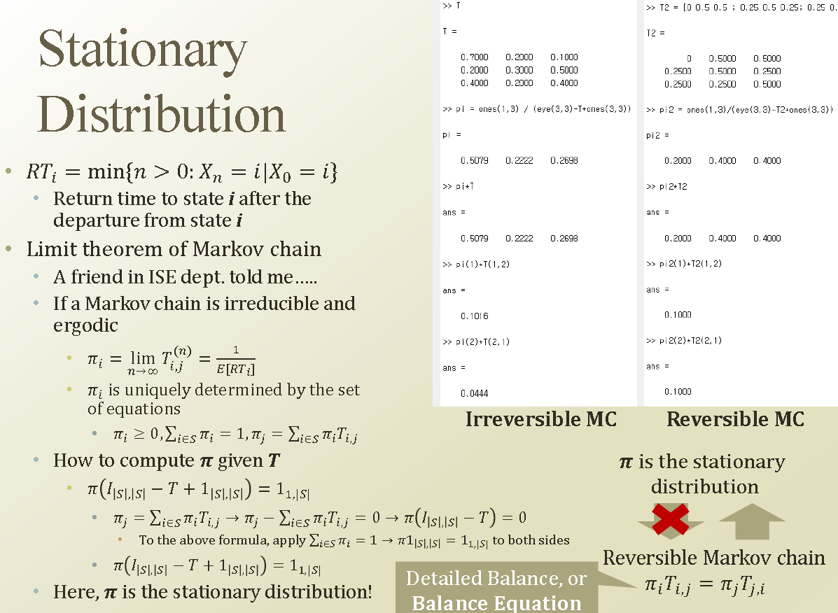 이번 stationary distribution 에서 다음번 state로 transition 해도 똑같이 stationary distribution 이 된다.