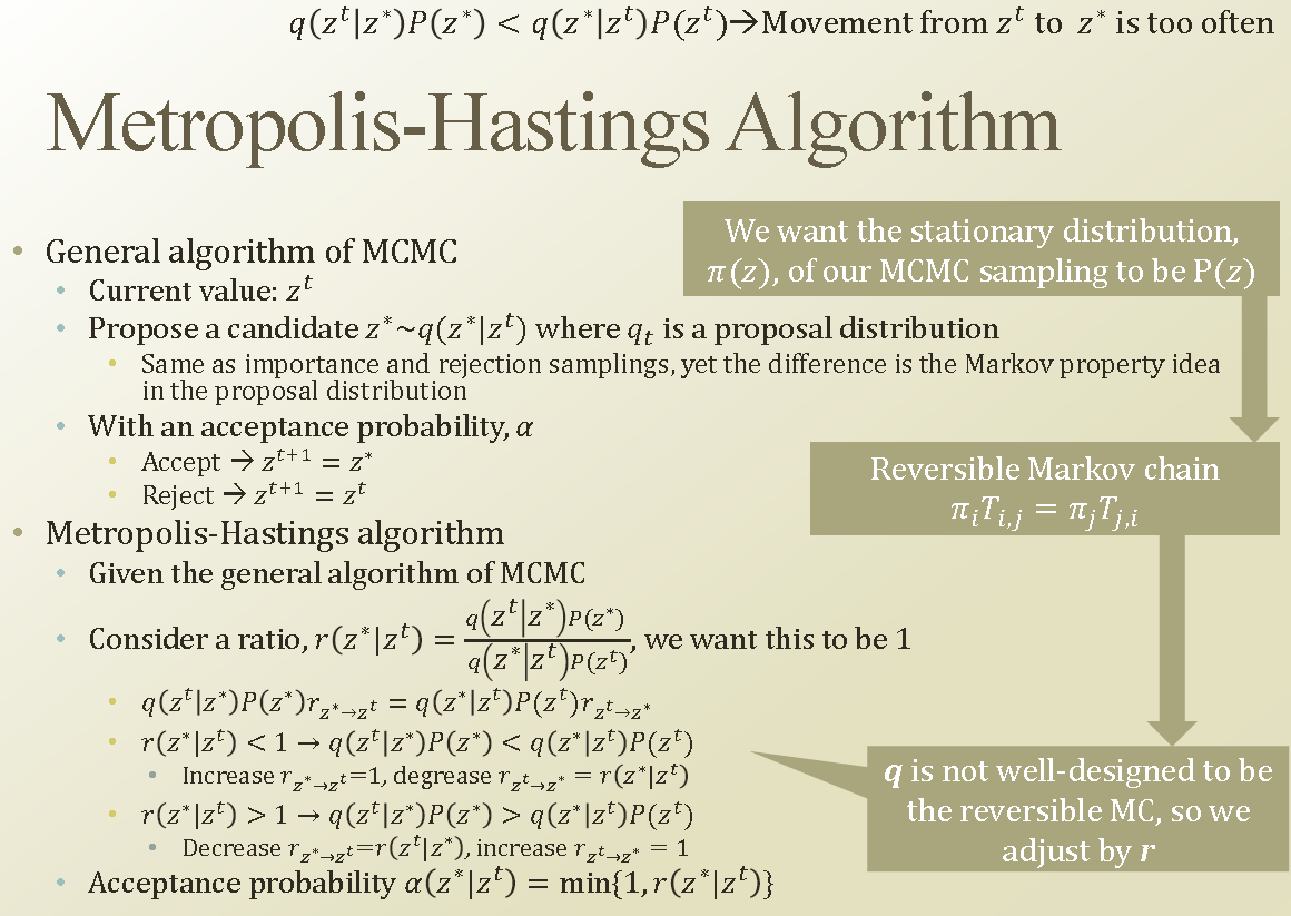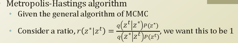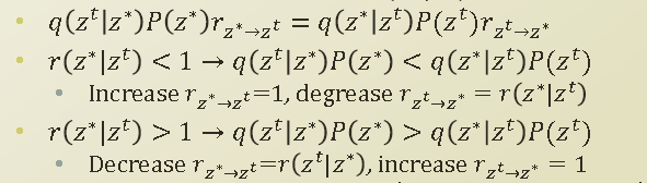 만약 위의 ratio r이 1보다 작으면 z*에서 zt로 transient 되는 확률보다 zt에서 z*로 가는 확률이 더 크다고 할수 있다.