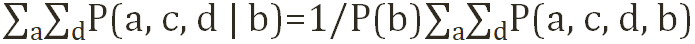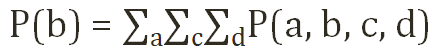 P(a,b,c,d) 의 joint distribution 이 있다고 가정하고 P(b)에 대해 summing out 하면 아래와 같이 나타낼수 있다.