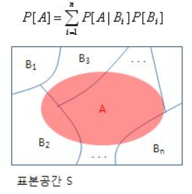 의미 : 확률 A를 각각의 확률 Bn과의 교집합의 합으로 나타낼수 있다. (아래 그림 참조)