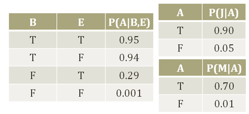 하지만 P(A)는 P(B)와 P(E)의 영향을 받고 , P(J) 나 P(M)은 P(A)의 영향을 받는다.